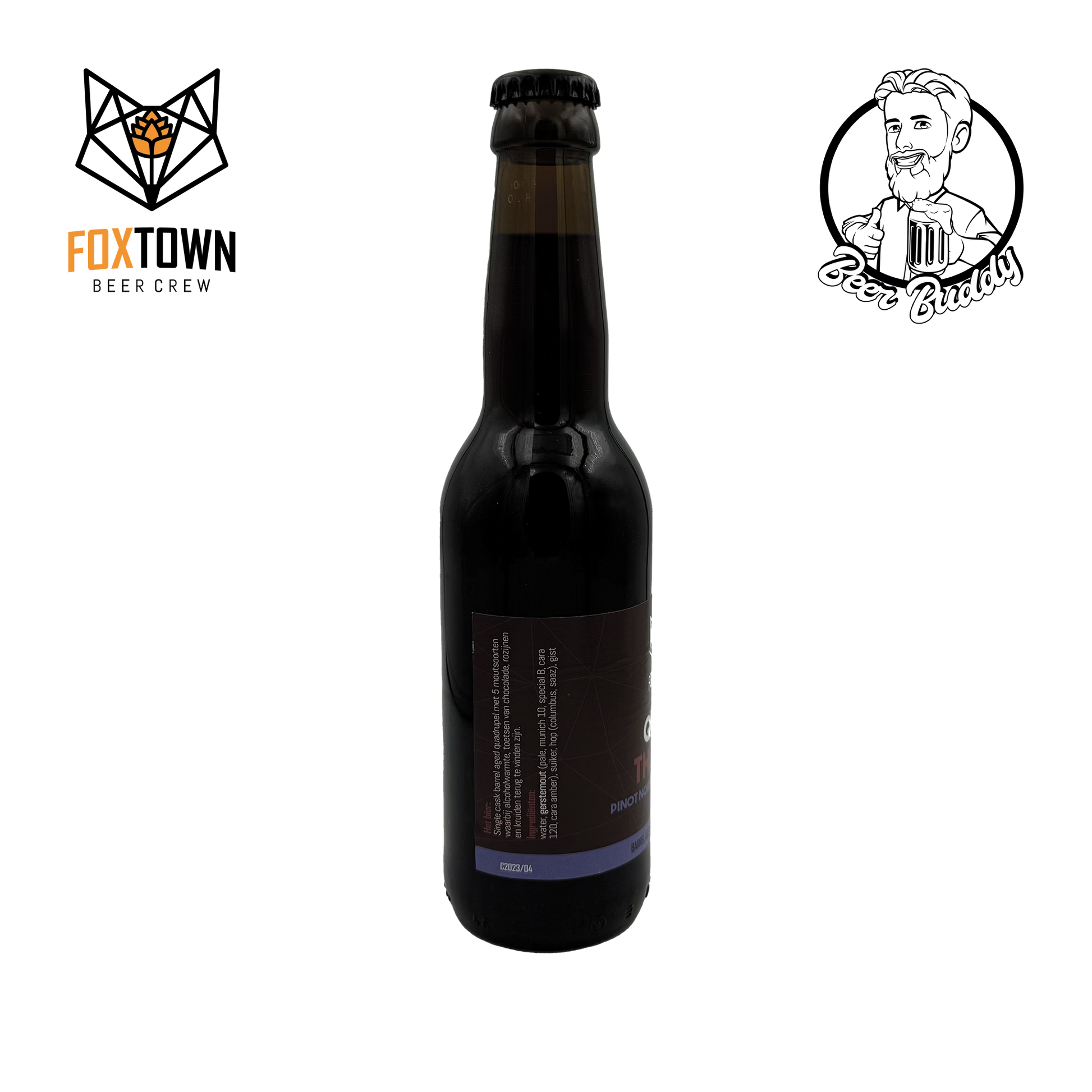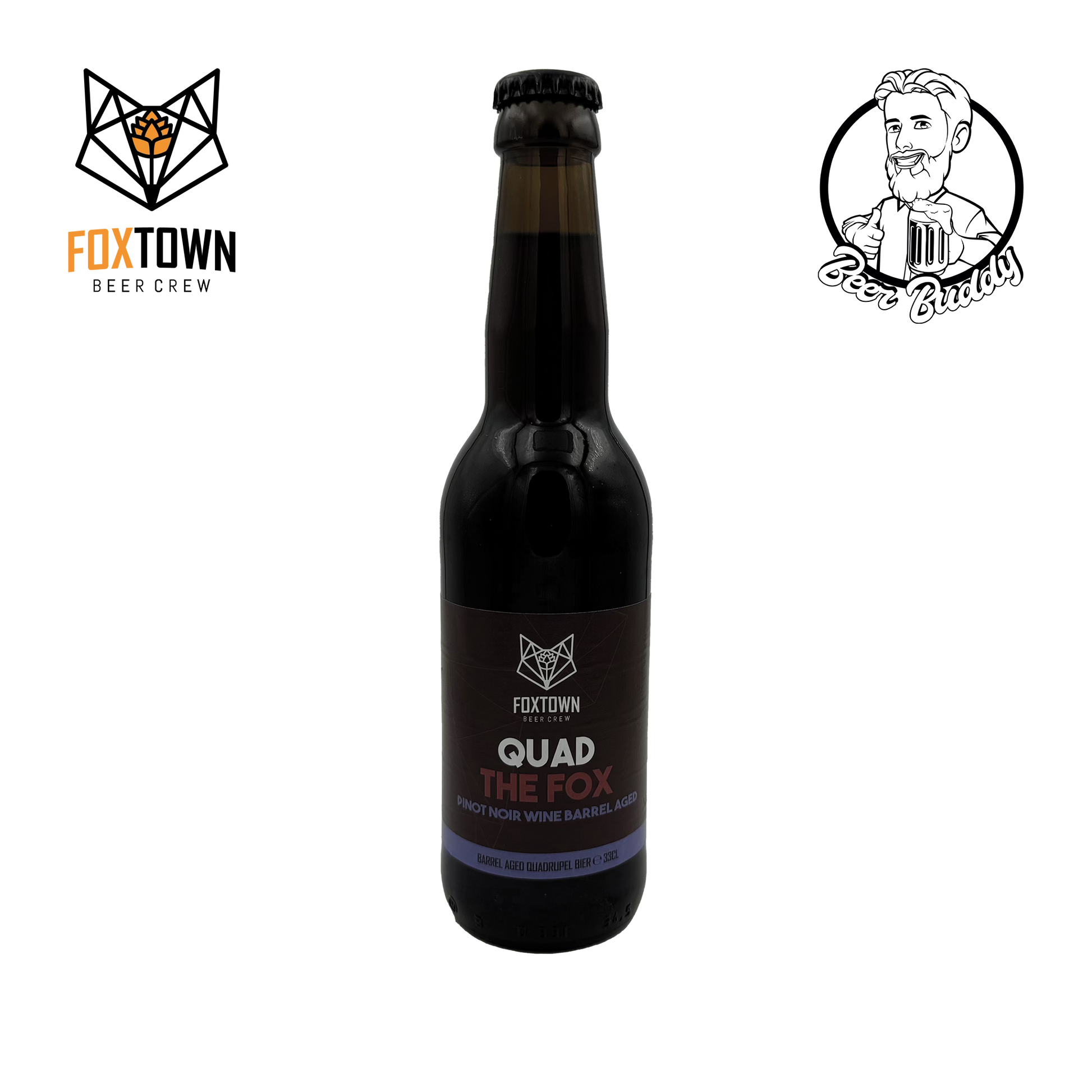 Sa tSraith Barrel Age, tá FoxTown Beer Crew ag iarraidh a thaispeáint conas is féidir le dul in aois bairille tionchar a imirt ar bhlas beorach. Is bairille fíona Pinot Noir é Cask2023/04 ina bhfuil a Quad the Fox aibí ar feadh 7 mí. Tugann sé seo nótaí beagán aigéadach don fhíon agus comhlánaíonn sé na blasanna rísíní atá sa bhunbheoir cheana féin.