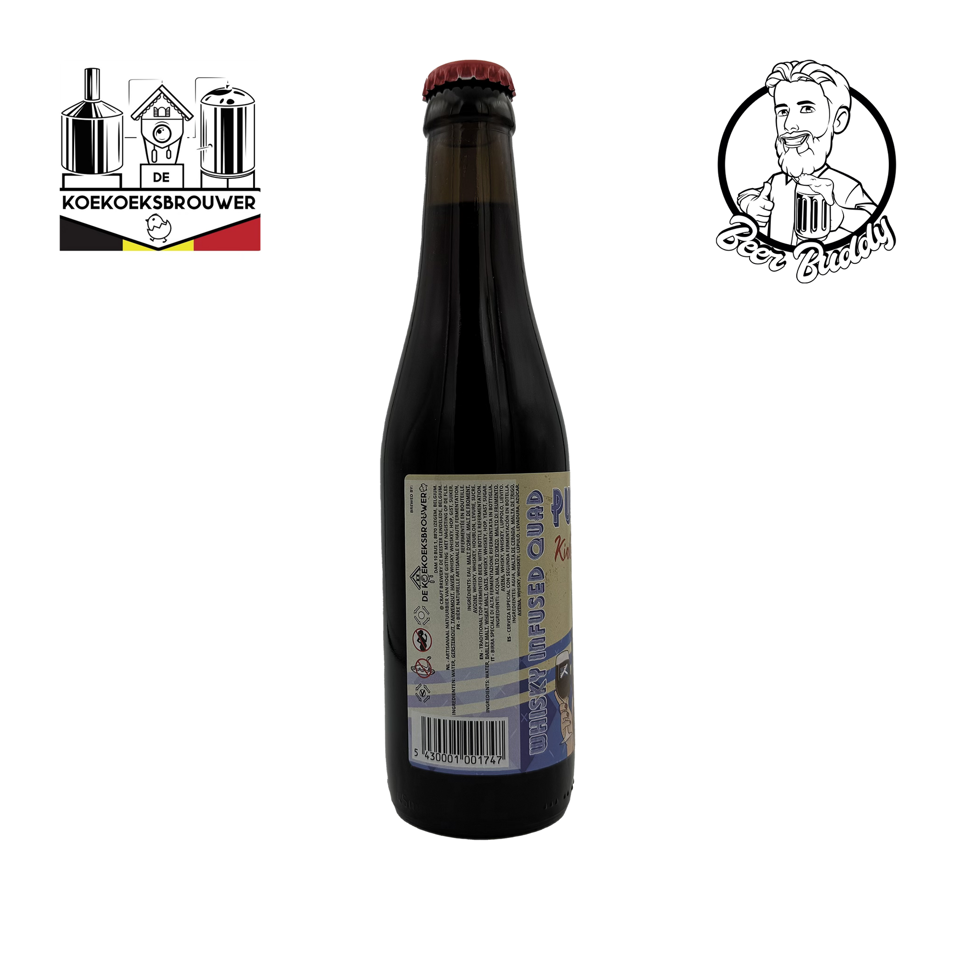 Deze Quadrupel werd geinfuseerd met zowel Scotch whisky als Amerikaanse Bourbon Whiskey. Mooie alcoholische body met zowel bittere als zoete toetsen. Vanille, eikenhout, chocolade en koffietoetsen.