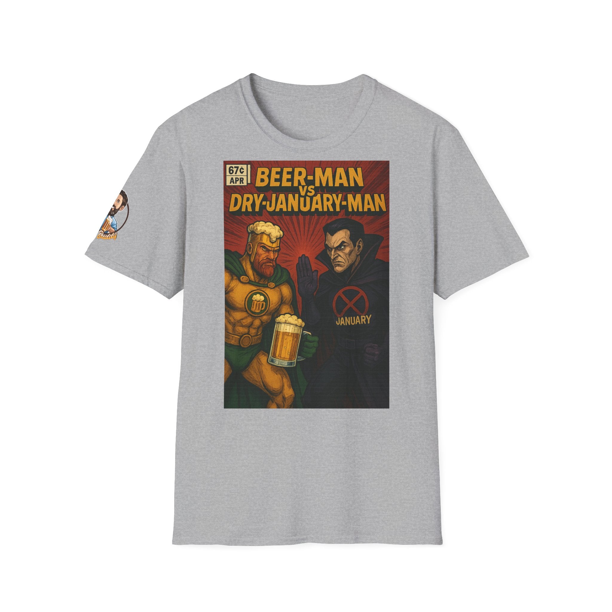 Unisex Softstyle T-Shirt - Beer-Man vs. Dry-January-Man ComicCover