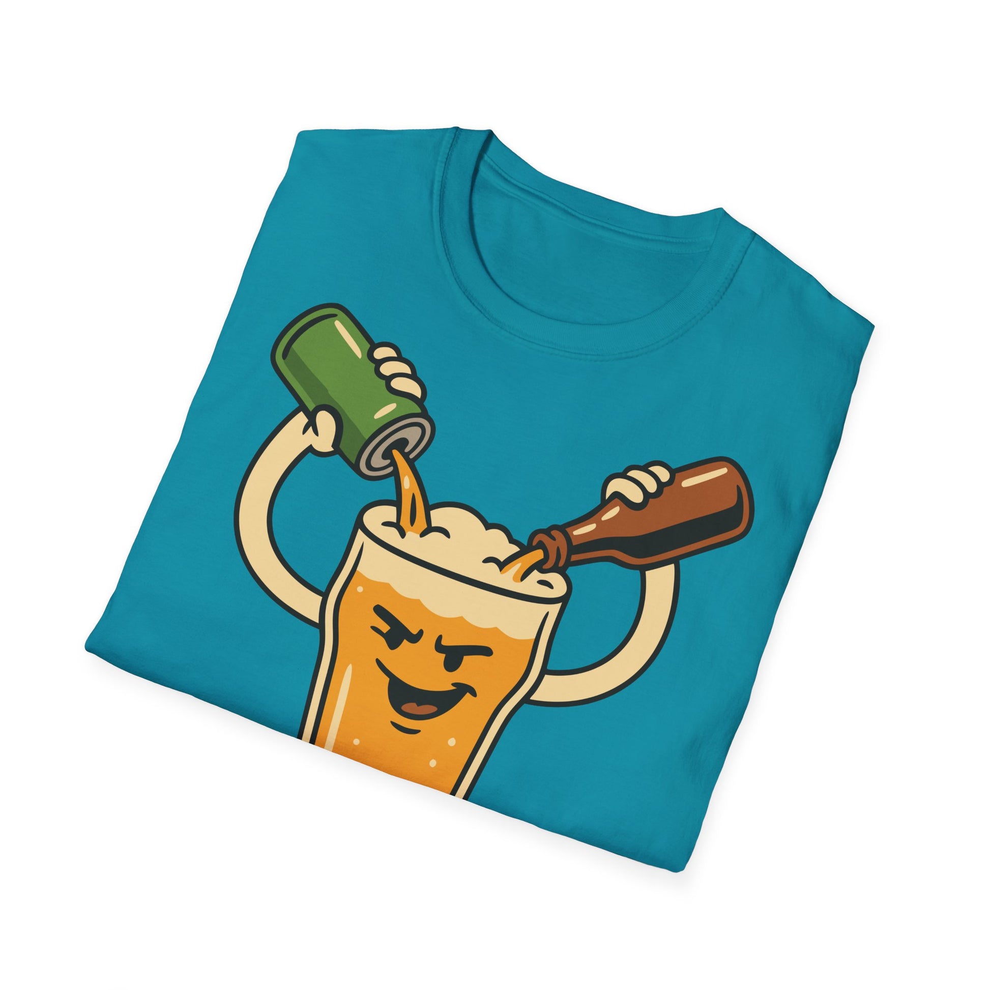 Oavsett om du svär vid en kall öl på burk eller föredrar att öppna den traditionella flaskan: för dig spelar det ingen roll. För låt oss vara ärliga: allt hamnar till slut i det där perfekta glaset. Och just det sammanfattar denna T-shirt i ett enkelt, genialt citat: “Burk eller flaska? Jag häller upp dem ändå.”